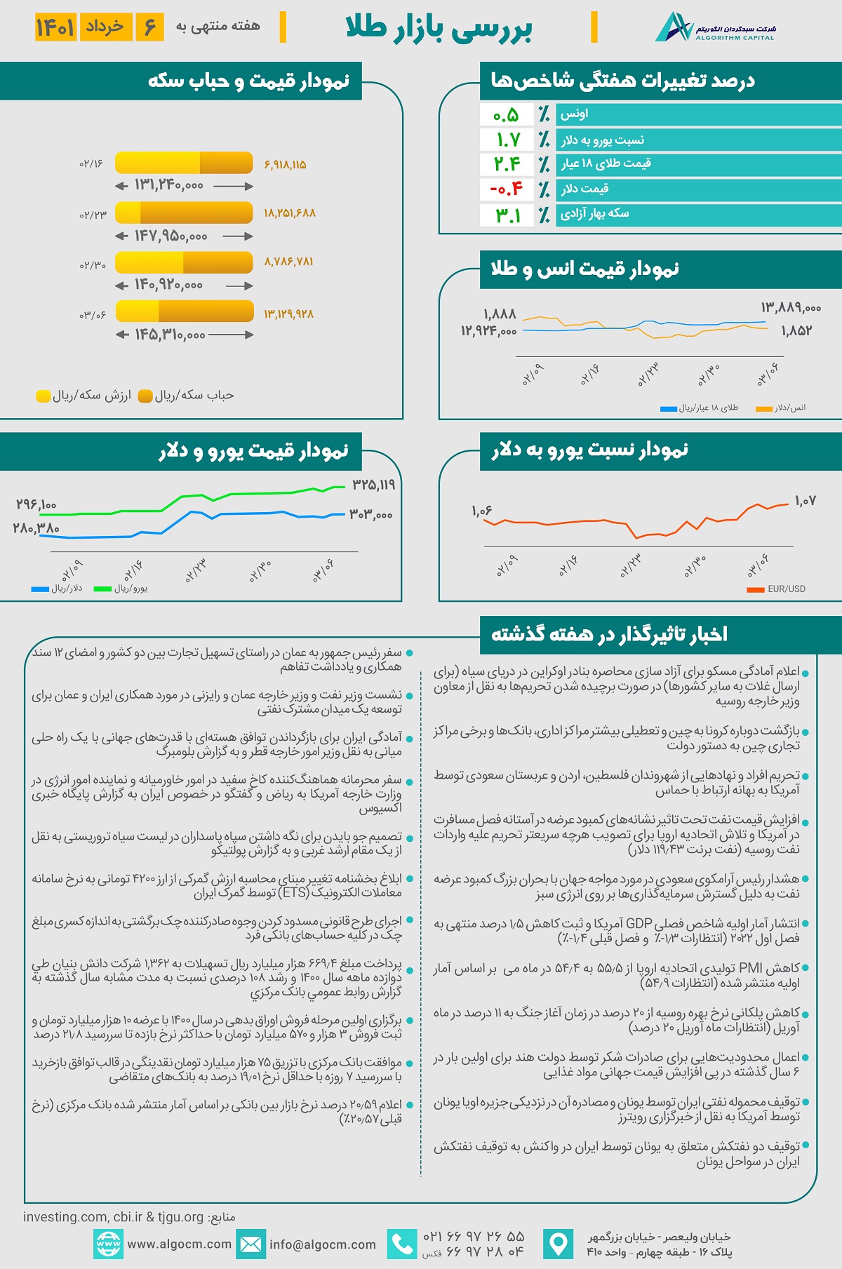 گزارش طلا هفته منتهی به 1401/03/06