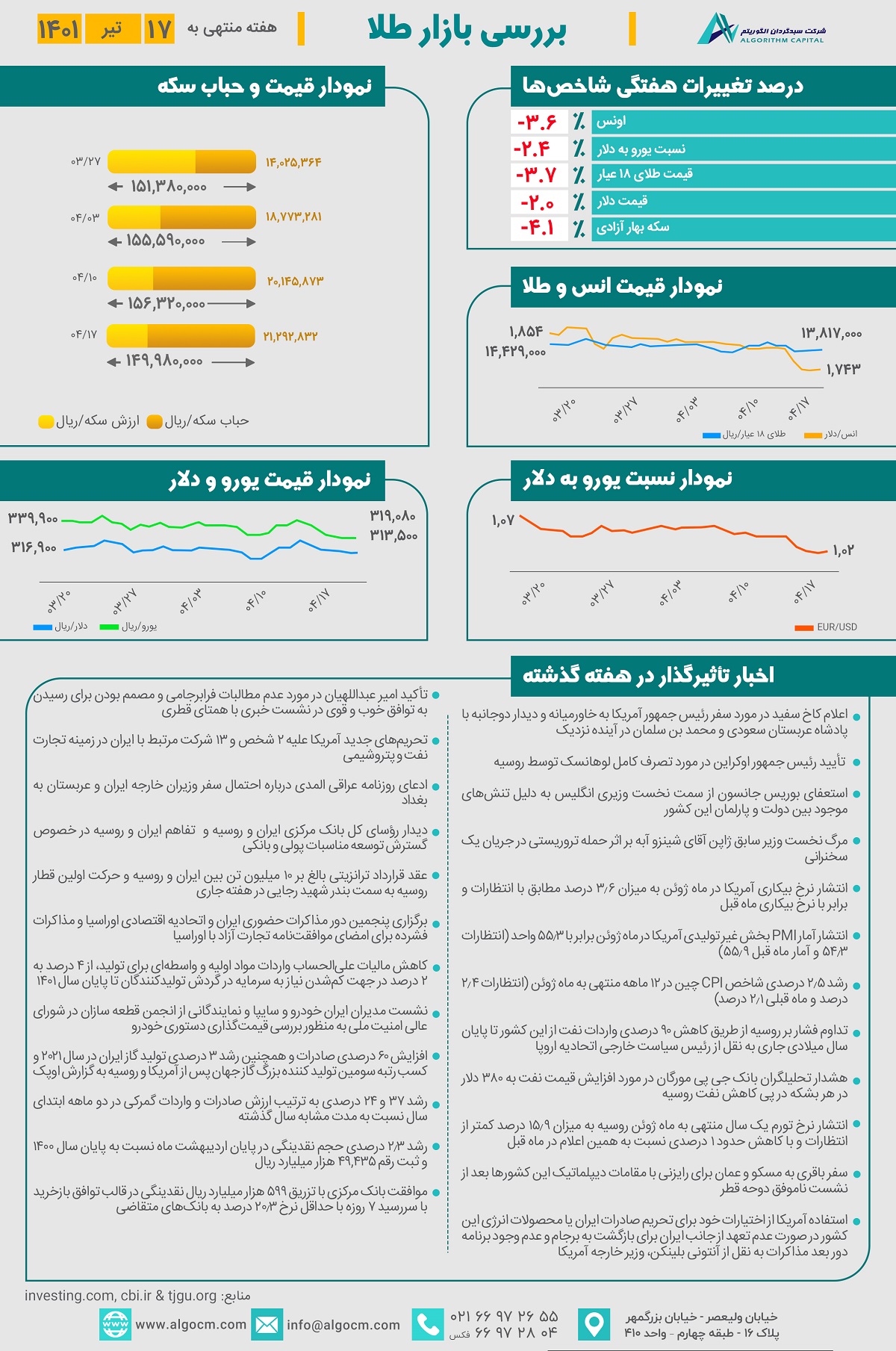 گزارش طلا هفته منتهی به 1401/04/17