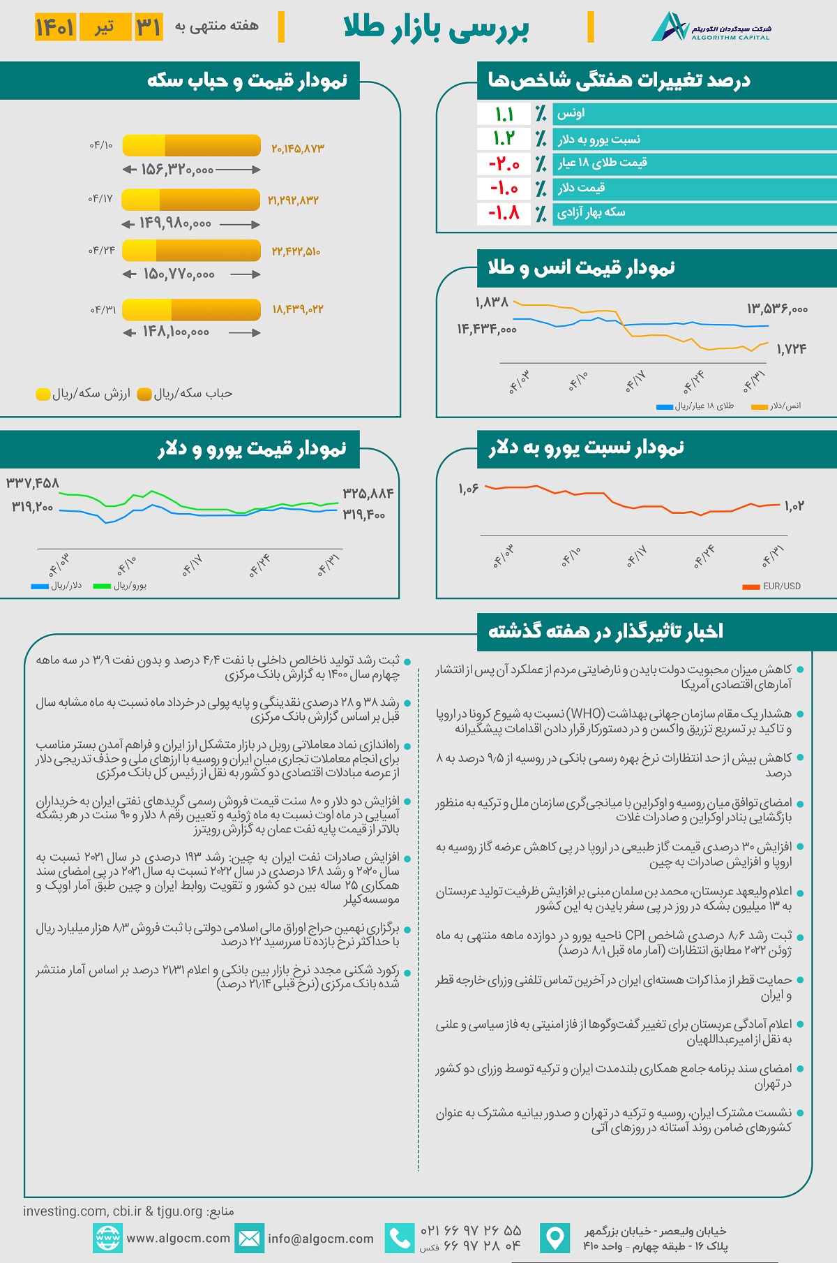 گزارش طلا هفته منتهی به 1401/04/31