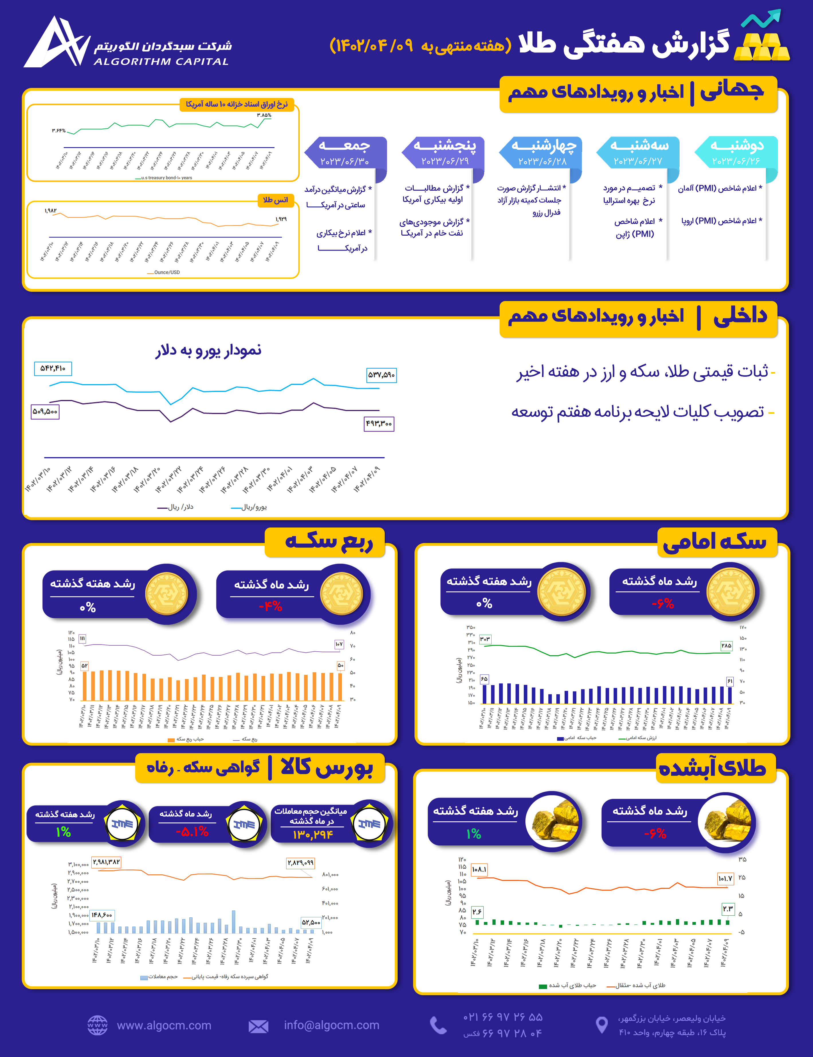 ۱۴۰۲ گزارش هفتگی طلا- هفته منتهی به ۹ تیر ماه ثبات قیمتی طلا، سکه و ارز در هفته اخیر دانلود متن کامل گزارش