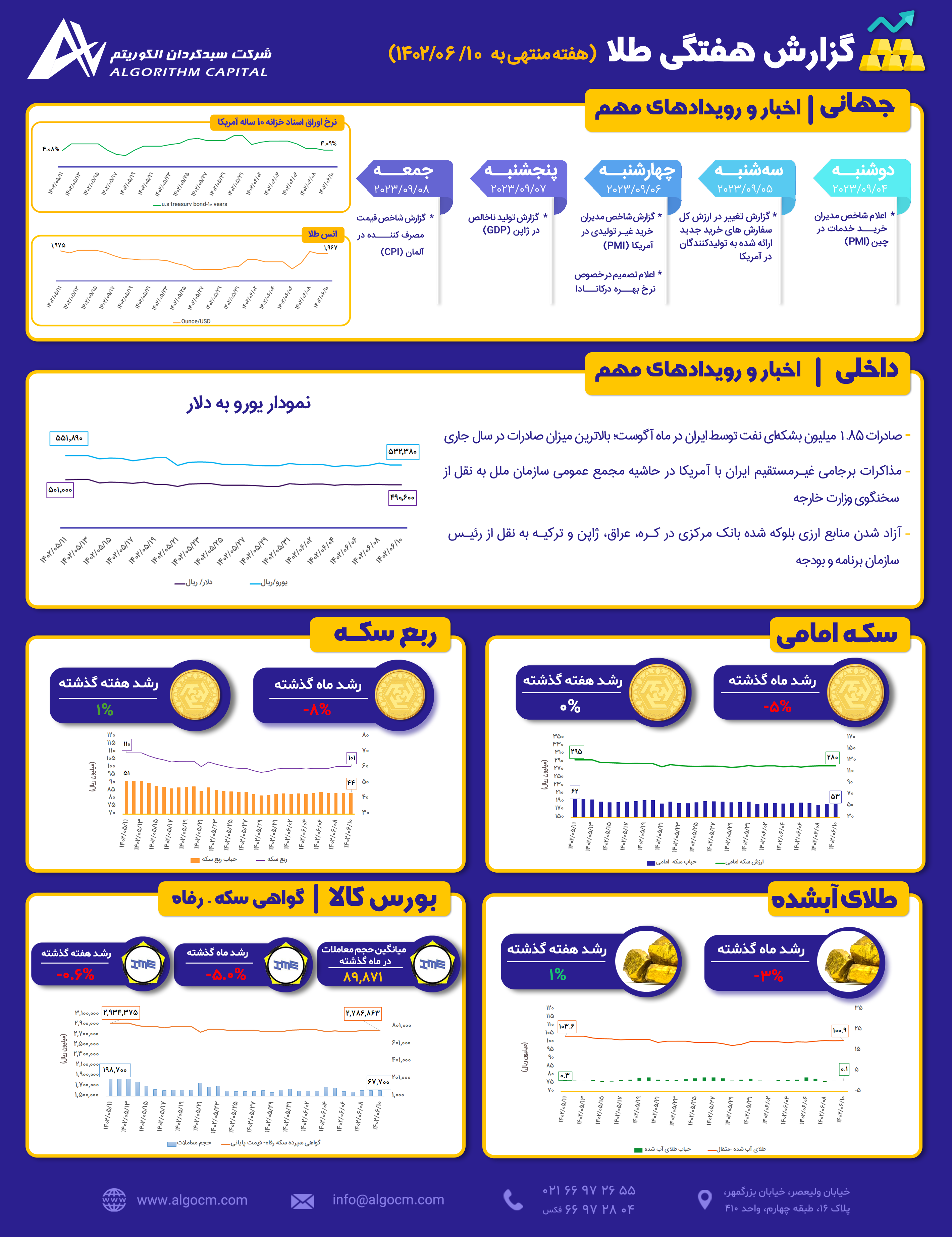 گزارش هفتگی طلا - ۱۰ شهریور ماه ۱۴۰۲