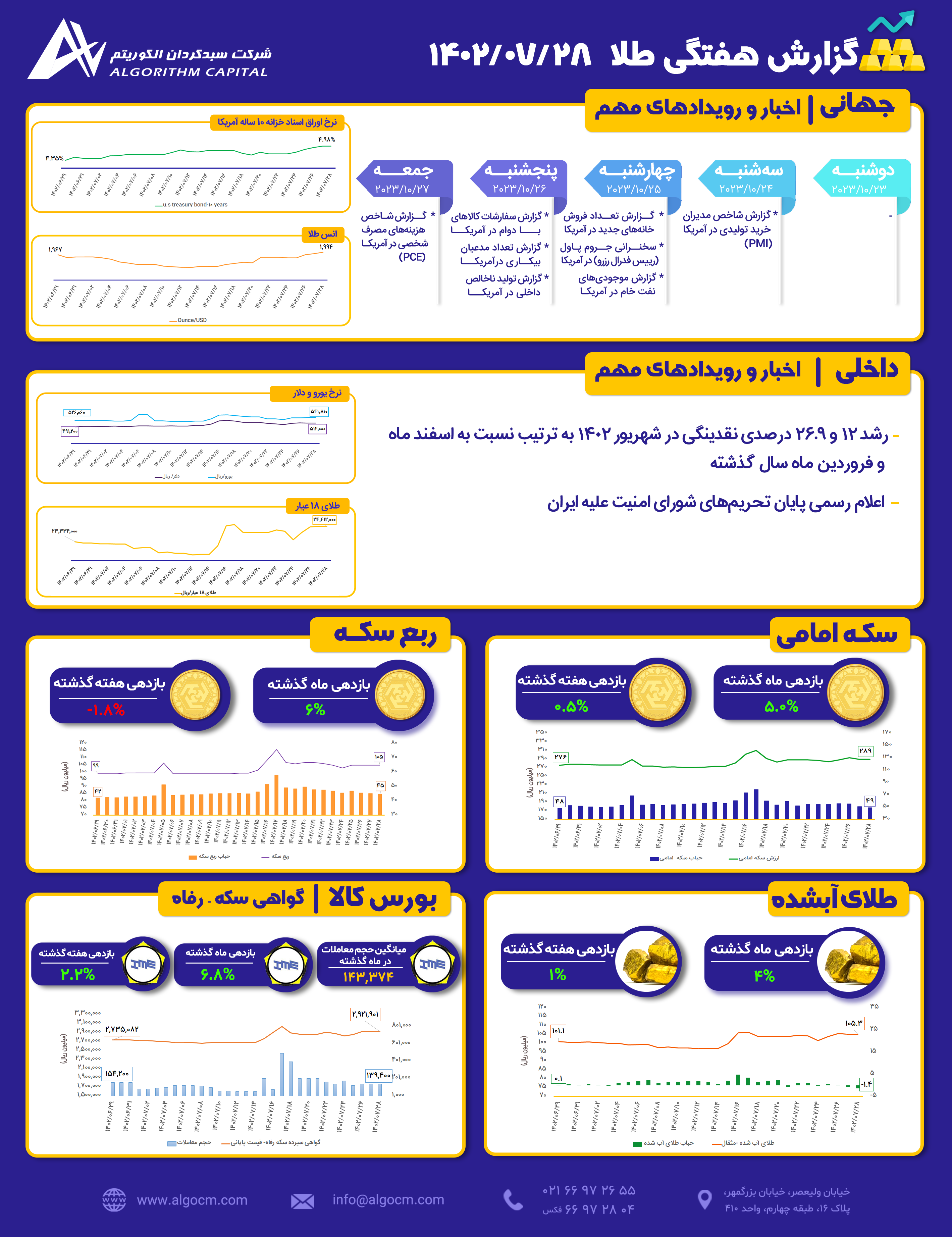 گزارش هفتگی طلا - ۲۸ مهر ماه ۱۴۰۲ تغییرات نامحسوس قیمت طلا و سکه در هفته اخیر... دانلود متن کامل گزارش