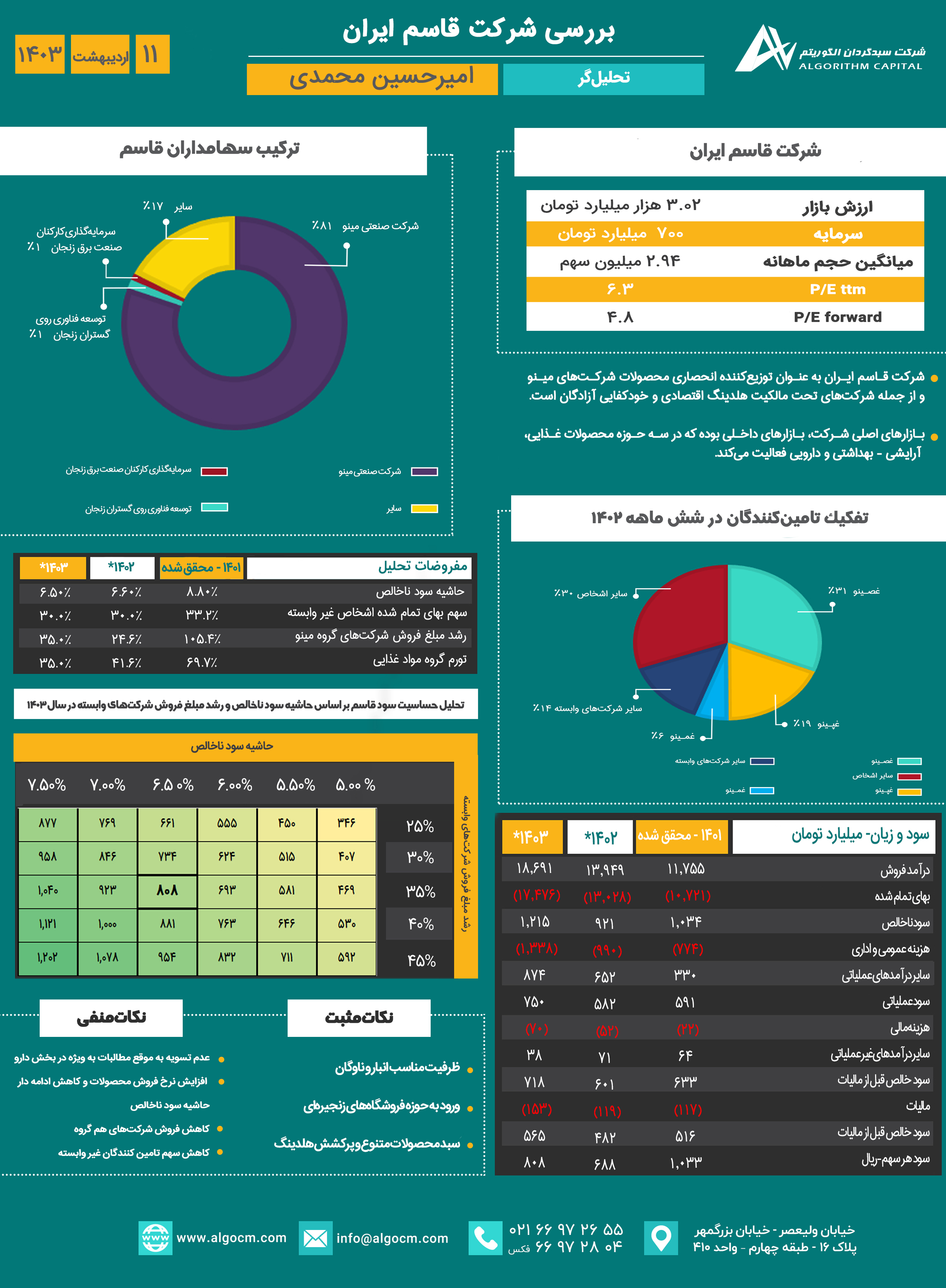 بررسی شرکت قاسم ایران - ۱۲ اردیبهشت ۱۴۰۳