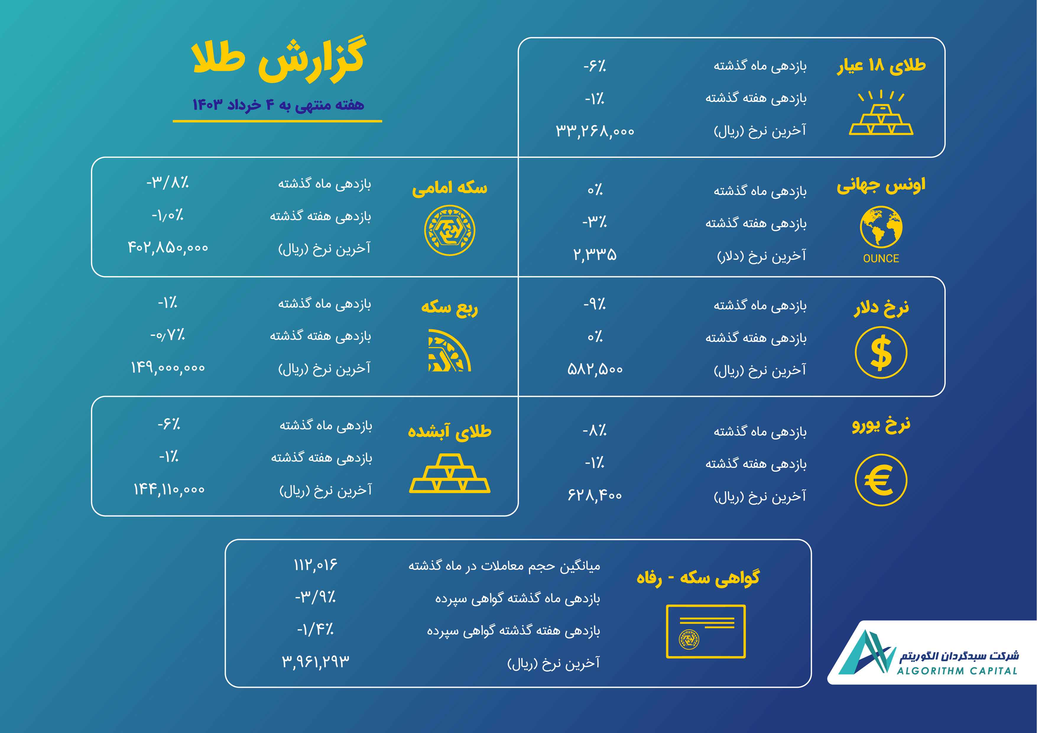 گزارش هفتگی طلا - ۴ خردادماه ۱۴۰۳